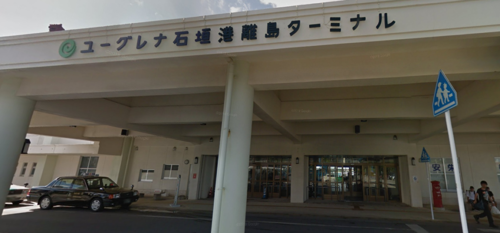 上の写真は離島ターミナルの正面玄関です。ご予約時に案内される時間に、向かって右側にある赤いポスト付近に集合していただけますようお願い申し上げます。バスの運転手がお声がけに参ります。